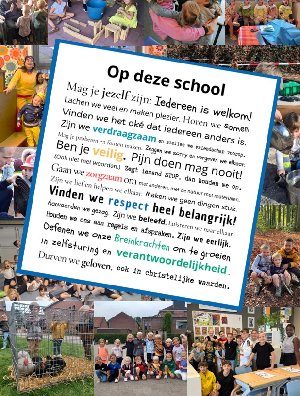 We zijn een katholieke school. Dit betekent dat we in onze opvoeding de figuur van Jezus en verhalen uit de Bijbel als inspiratie en wegwijzer gebruiken om kinderen een moderne en eigentijdse geloofsopvoeding te bieden.